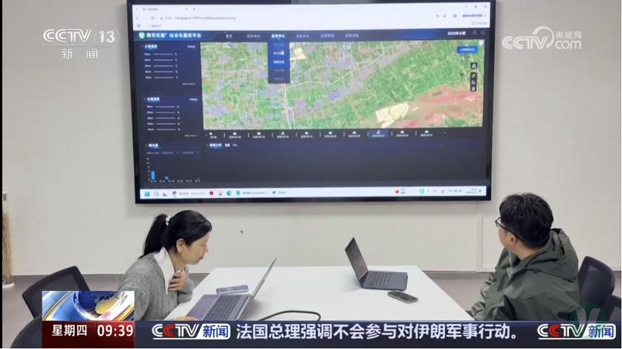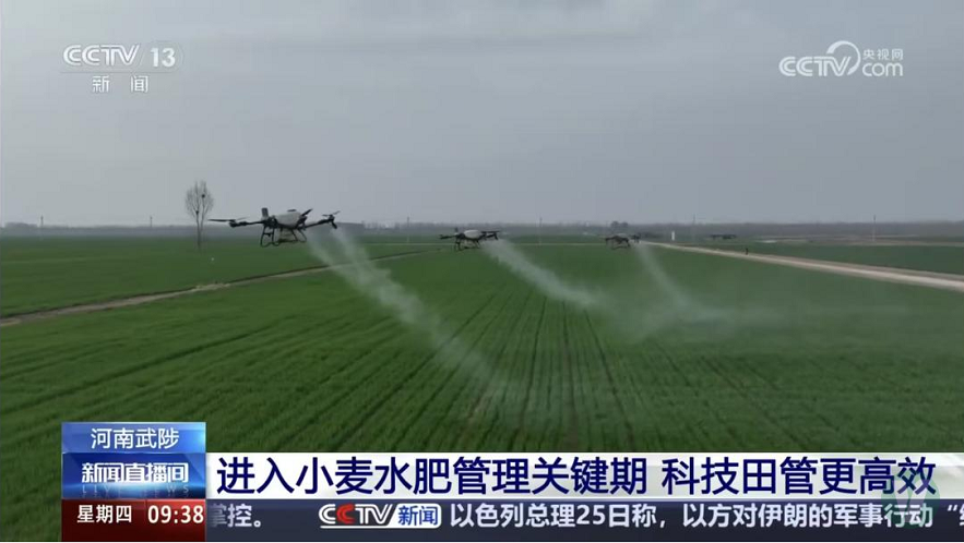 武陟縣大豐鎮(zhèn)黃河灘區(qū)小麥種植基地負(fù)責(zé)農(nóng)業(yè)社會服務(wù)化平臺運營的技術(shù)人員接受了央視的現(xiàn)場采訪,詳細(xì)介紹了農(nóng)業(yè)社會化服務(wù)平臺的功能作用及涵蓋項目。隨著央視《新聞直播間》的鏡頭,青綠的麥苗拔節(jié)生長,搭載北斗導(dǎo)航的植保無人機正在進(jìn)行病蟲害防控,田間的滴灌帶像毛細(xì)血管一樣精準(zhǔn)輸送水肥,一幅“科技春管圖”徐徐展開。